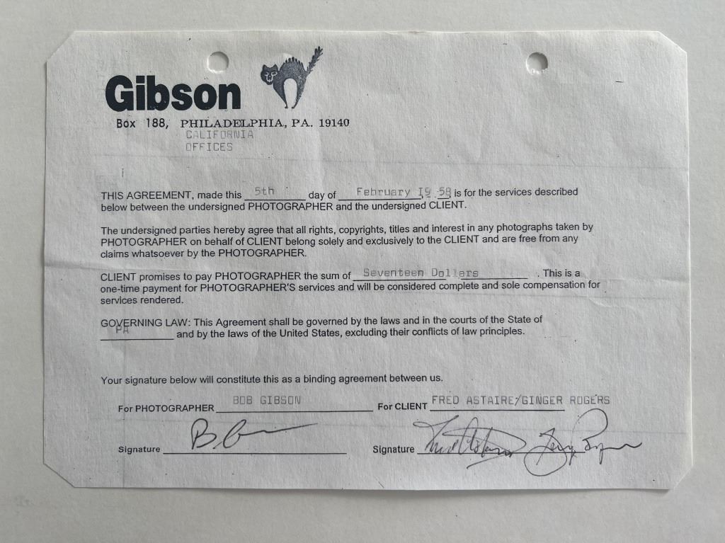 Fred Astaire and Ginger Rogers signed 1958 Gibson photography contract. 8x6 inches. DB364