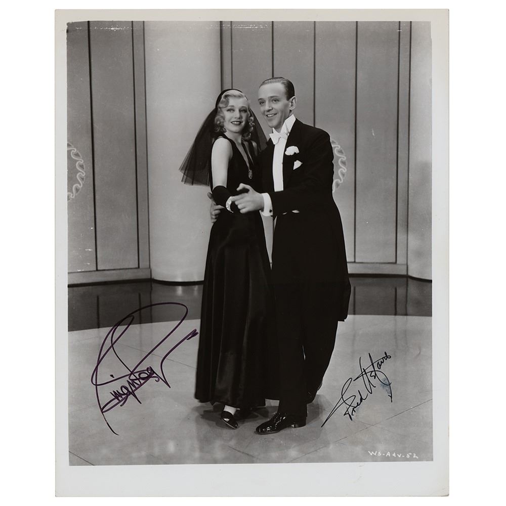 Glossy 8 x 10 full-length photo of the famous dancing duo, signed in black felt tip by Fred Astaire and Ginger Rogers. In fine condition, with a slight brush to Astaire's signature.