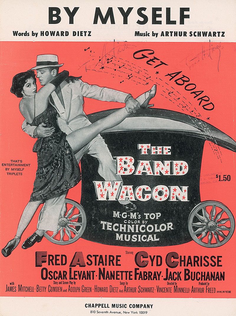 Sheet music for ‘By Myself,’ 9 x 12, five pages, signed twice on the front cover in ink by Astaire. Moderate skipping and irregular adhesion to signatures, otherwise fine condition.