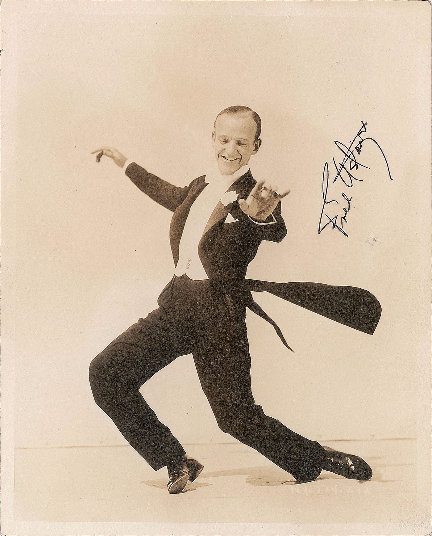Excellent matte-finish 8 x 10 full-length photo of the agile performer, signed in black ink by Astaire. In fine condition, with a trivial smudge near signature. From the Harvey and Rhoda Kuflik Collection.