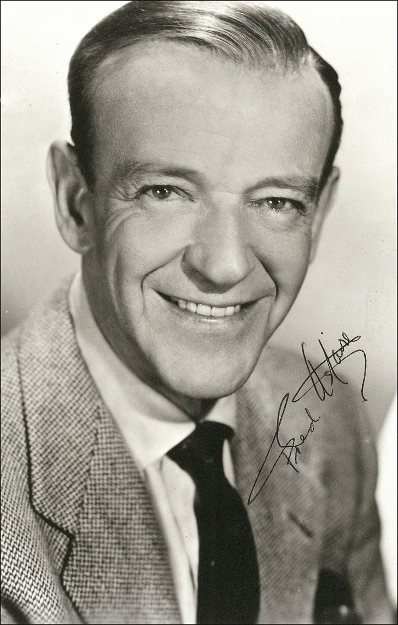 Matte-finish 5.25 x 8 photo of a smiling Astaire, signed in black ballpoint. In fine condition, with trimmed edges. Pre-certified PSA/DNA and RRAuction COA.