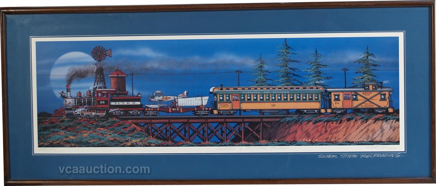 Fred Bonn Train Print "Silver State Railroading" signed in frame - 41" x 17"