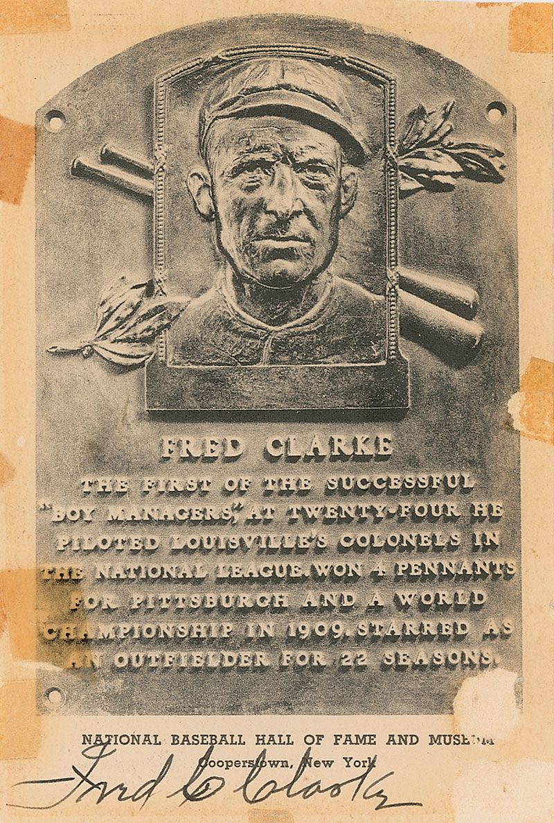 Uncommon Albertype Type II Hall of Fame plaque card, signed in the lower border in fountain pen, “Fred C. Clarke.” In very good condition, with toned tape remnants to edges and a couple areas of surface loss to the lower right.