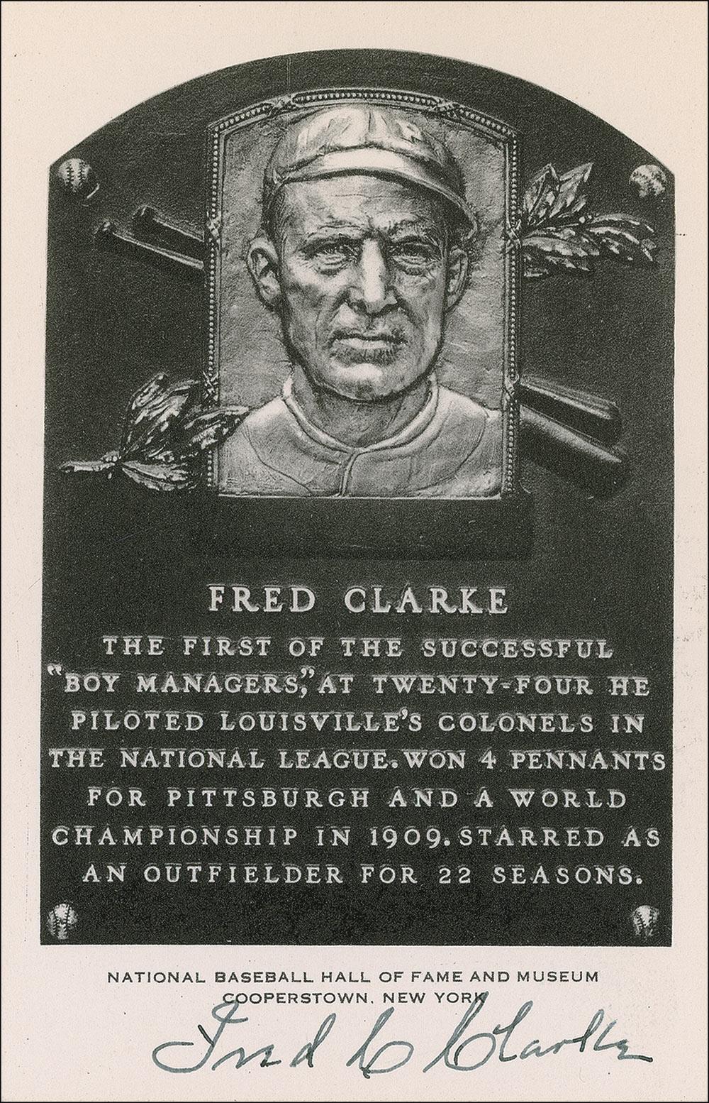 Black and white Hall of Fame plaque card signed across the bottom in black fountain pen. In fine condition.