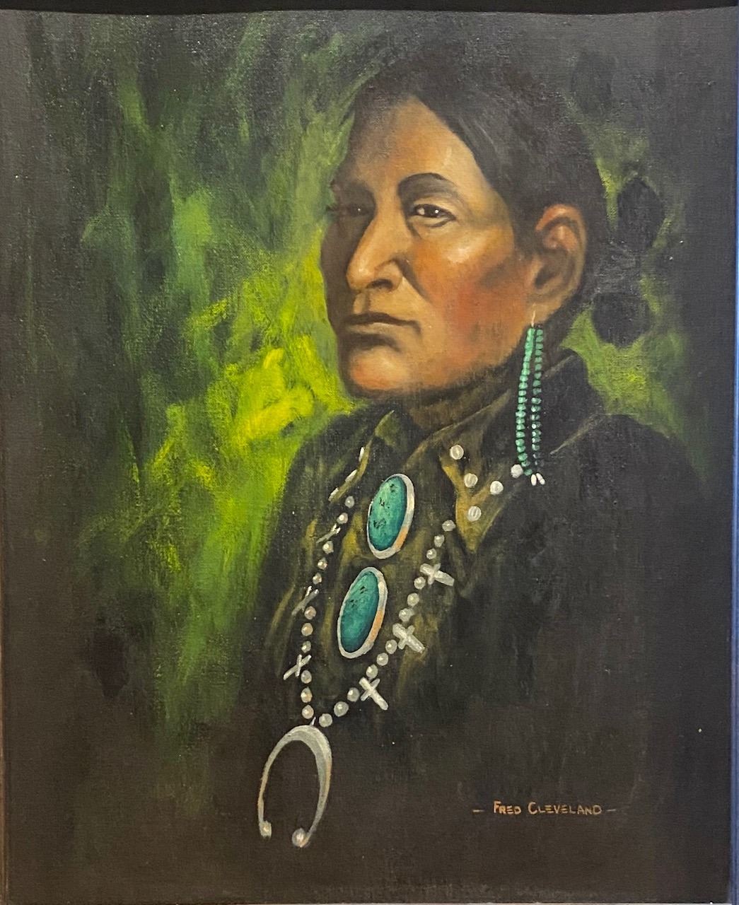 Very Nice Original by Navajo Artist Fred Cleveland. Image measures 19.75-inches x 15.75-inches. Framed 25-inches x 21-inches.