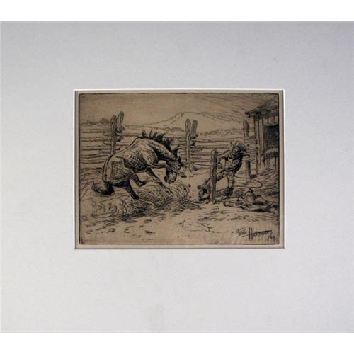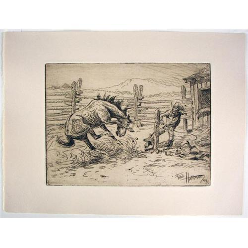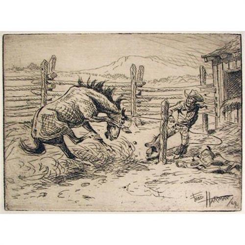 Fred Harman (1902-1982) (CO & CA) Etching, Bronco Buster, 1969, image size 6" x 7 3/4", signed in plate