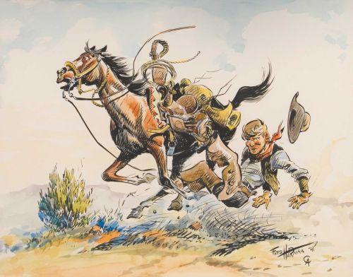 Fred Harman (1902-1982). CA. 12" x 16". Watercolor. "Red Ryder". Painted in 1973. Fine condition. (est $2,000-3,000)