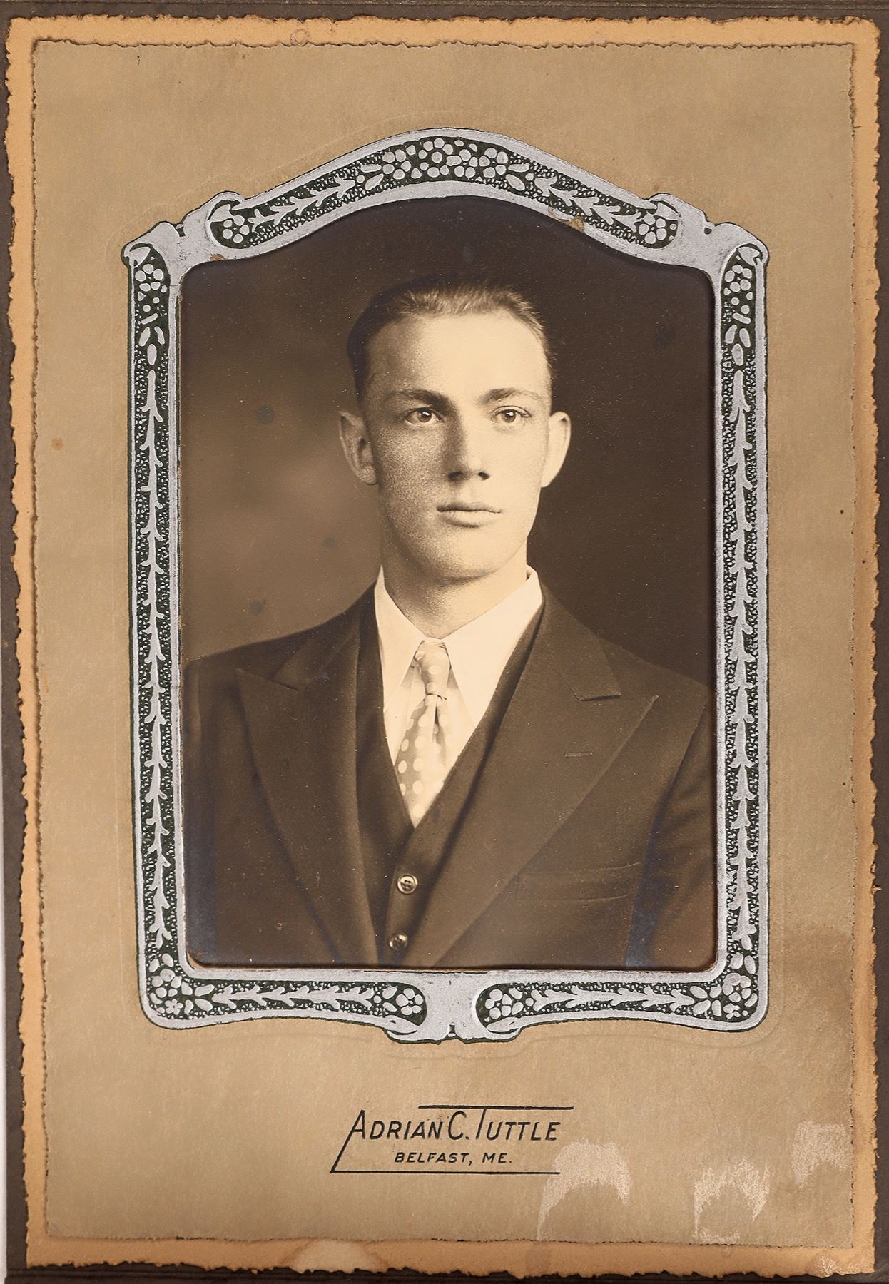 Photograph portrait of a man named Fred Hills. It could be that this is Fred Hills, a book publisher from Colorado Springs, or maybe his son. It is possible that this could be either of those men, but that cannot be confirmed without further research. The photograph was taken by the Studio of Adrian C. Tuttle in Belfast, Maine. 4.5 x 6.25, good condition.