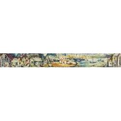Fred Jones (American, b. 1914 ), “Harbor”, c. 1950; watercolor/paper, 3” x 21.5”, signed and inscribed on verso, “Chicago”, Important Chicago African-American painter. He was an important member of the Southside Art Center, and he exhibited at Atlanta University, Art Institute of Chicago, and Xavier University in the 1950s.