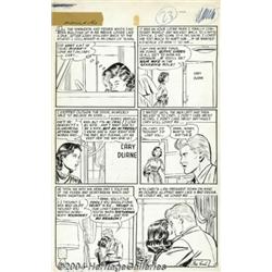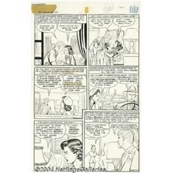 Fred Kida - Original Art for Heart and Soul #1, Complete 7-page Story, "Unwanted!" (Mikeross, 1954). Fred Kida illustrated this melodrama for Ross Andru and Mike Esposito's company, Mikeross. The overall art paper measures 13.25" x 20", with an image area of 12" x 18". Several of the word ballons had lettering corrections pasted-on, and a few have slipped off, leaving glue stained areas. The pages are otherwise clean. Panel one of page one has a pasted-on correction. Fred Kida illustrates this story in the classic soap opera, romance comic, art style as typified by artists such as Alex Toth, Leonard Star, and Stan Drake. This romance takes place in a TV studio. Plenty of great 1950s style and fashions, all drawn with verve. Important notice: Heritage usually auctions material at the rate of 200-250 lots per hour. On some occasions eBay Live bid software or the Internet may not be able to keep up with the pace of the auction. We recommend placing a realistic absentee bid now as insurance to avoid disappointment. Occasionally the auctioneer may eliminate or reject an eBay Live bid, and the auctioneer may also reopen a lot after the close of the eBay live bidding (usually because we missed an audience bid), and may reject your bid even if it shows you as the winning bidder. By bidding via eBay Live, you agree that Heritage may award the lot to another bidder at its sole discretion under the circumstances described above or any other reasonable circumstances. Since eBay bids are not shown to us until we open the lot on the floor, we treat those bids just like floor bids. In most cases the floor responds before the eBay bid is presented to us, due to Internet lag time, so for consistency we have made it a policy that floor bids are always considered first over tie eBay live bids. Also please note that all Heritage lots purchased through eBay Live carry a 20% Buyer's Premium. Please make sure you read the Terms and Conditions before you bid.