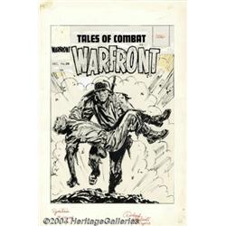 Fred Kida (attributed) - Original Cover Art for Warfront #29 (Harvey, 1955). This cover features a vigorous use of the dry-brush inking technique that adds drama to the heroic image of an infantryman risking life and limb to rescue his fallen buddy during an all-out artillery attack. The energy of execution and textures displayed in these war-weary figures are expressive and direct. The overall art paper size is 13" x 19.75" with an image area of 10.75" x 15.5". The art is in great condition, but the Harvey logo and Comics Code Authority stamp stat are missing. Important notice: Heritage usually auctions material at the rate of 200-250 lots per hour. On some occasions eBay Live bid software or the Internet may not be able to keep up with the pace of the auction. We recommend placing a realistic absentee bid now as insurance to avoid disappointment. Occasionally the auctioneer may eliminate or reject an eBay Live bid, and the auctioneer may also reopen a lot after the close of the eBay live bidding (usually because we missed an audience bid), and may reject your bid even if it shows you as the winning bidder. By bidding via eBay Live, you agree that Heritage may award the lot to another bidder at its sole discretion under the circumstances described above or any other reasonable circumstances. Since eBay bids are not shown to us until we open the lot on the floor, we treat those bids just like floor bids. In most cases the floor responds before the eBay bid is presented to us, due to Internet lag time, so for consistency we have made it a policy that floor bids are always considered first over tie eBay live bids. Also please note that all Heritage lots purchased through eBay Live carry a 20% Buyer's Premium. Please make sure you read the Terms and Conditions before you bid.