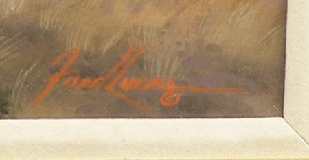 Circa 1985, Signed original oil on canvas "Yolo Fall Drive," another commissioned work featuring working horses and cowboys moving the herd from high country. 29" x 42" (39" x 53") From the Millican Collection.