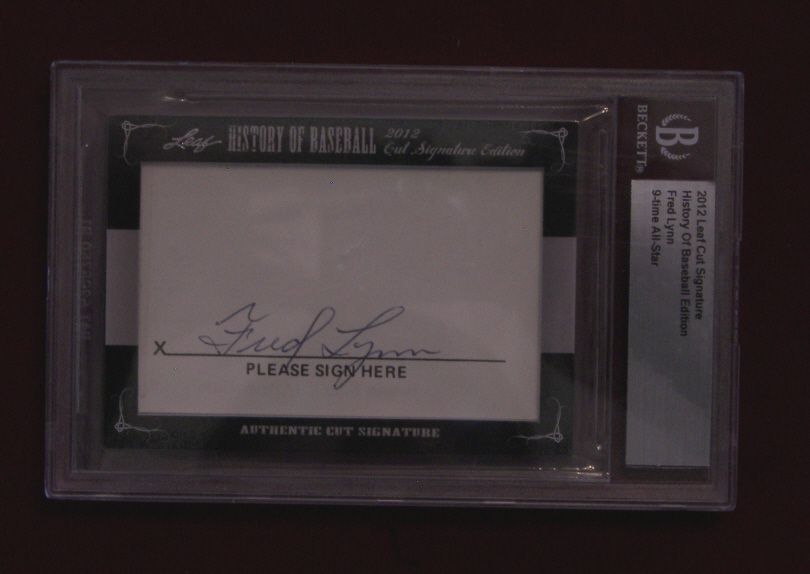 (7853) Fred Lynn, 2012 Leaf Cut Signature ,"History of Baseball insert card", Certified and Encapsulated by Beckett Grading Services,