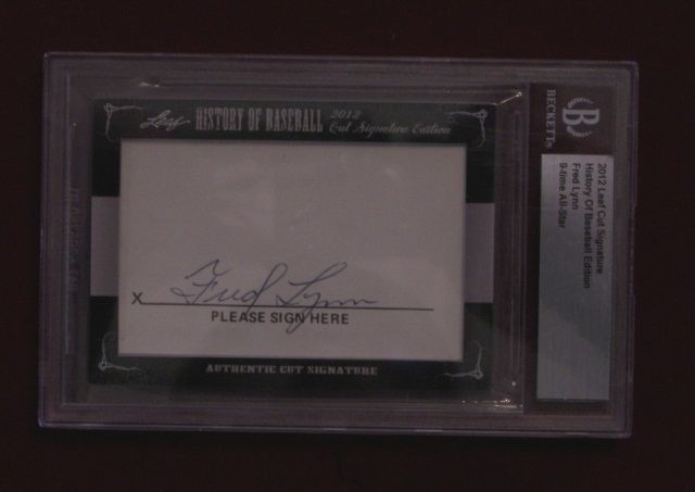 Fred Lynn Signed Cut, Certified (7853) Fred Lynn, 2012 Leaf Cut Signature ,"History of Baseball insert card", Certified and Encapsulated by Beckett Grading Services,