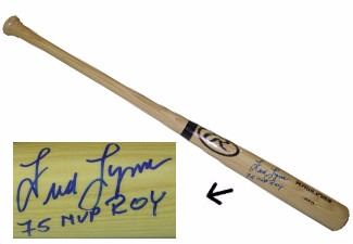Fred Lynn played for the Boston Red Sox (1974–1980), California Angels (1981–1984), Baltimore Orioles (1985–1988), Detroit Tigers (1988–1989) and San Diego Padres (1990). He is best known for being the first player to win the Rookie of the Year award and MVP in the same season. Lynn was inducted into the Boston Red Sox Hall of Fame in 2002 and to the College Baseball Hall of Fame in 2007. Fred Lynn has hand signed this Rawlings Black Big Stick Bat with 75 MVP ROY inscription. MAB Hologram and Certificate of Authenticity from Athlon Sports.