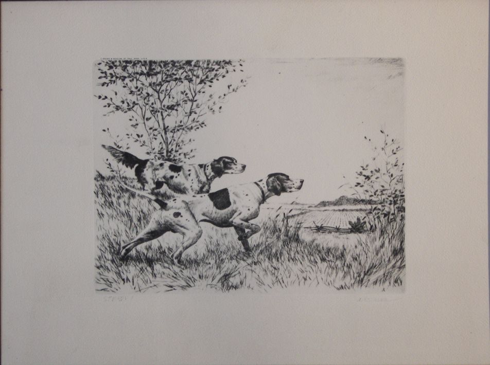 , Fred McCaleb , Taliocrome From Original Drypoint , " Steady " , 7 1/2" x 10" , Signed in Plate , (6289) Reproduced In Taliocrome By Brown And Bigelow