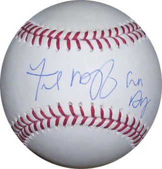 Fred McGriff has many mentionable career milestones and awards received. He is a 5 time MLB All-Star, let both the AL and NL in annual homeruns, holds MLB record for hitting home runs in the greatest number of different stadiums (42), and he is the only player in Major League history to have seasons of 30 or more homers with 5 different teams. McGriff's production remained steady in 1995 as he continued to be a successful cleanup hitter for the Atlanta Braves. He hit two home runs in the 1995 World Series as he won his only championship ring. Fred McGriff has hand signed this Official Major League Baseball with Crime Dog inscription. Private Signing 8/18/2012 and Certificate of Authenticity from Athlon Sports.