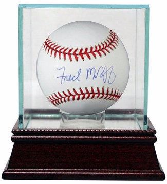 Fred McGriff has many mentionable career milestones and awards received. He is a 5 time MLB All-Star, let both the AL and NL in annual homeruns, holds MLB record for hitting home runs in the greatest number of different stadiums (42), and he is the only player in Major League history to have seasons of 30 or more homers with 5 different teams. McGriff's production remained steady in 1995 as he continued to be a successful cleanup hitter for the Atlanta Braves. He hit two home runs in the 1995 World Series as he won his only championship ring. Fred McGriff has hand signed this Official Major League Baseball. Private Signing 8/18/2012 and Certificate of Authenticity from Athlon Sports. NOTE: DISPLAY CASE SHOWN IS INCLUDED.