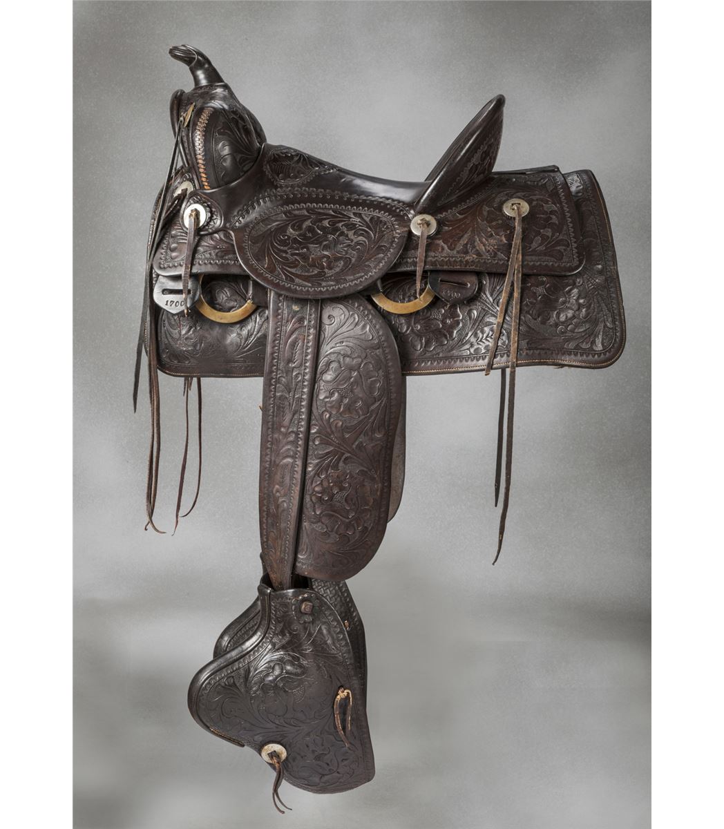 Fred Mueller, Denver Saddle. A fine condition Fred Mueller, Saddlery & Harness Co. Denver, Colorado square skirt saddle with tapaderos, double rigging and beautiful floral tooling. Bright rich finish. Mueller opened in Denver in 1891 and lasted into the 1960s. This saddle is a circa 1920s example of the company's great work.