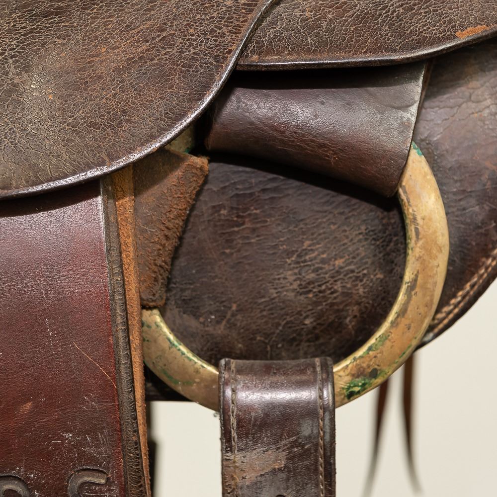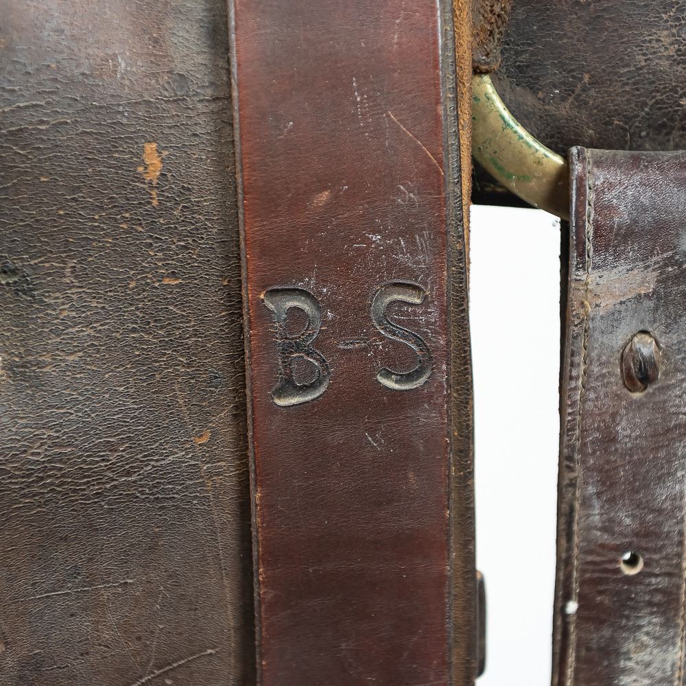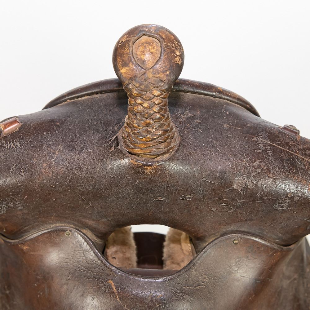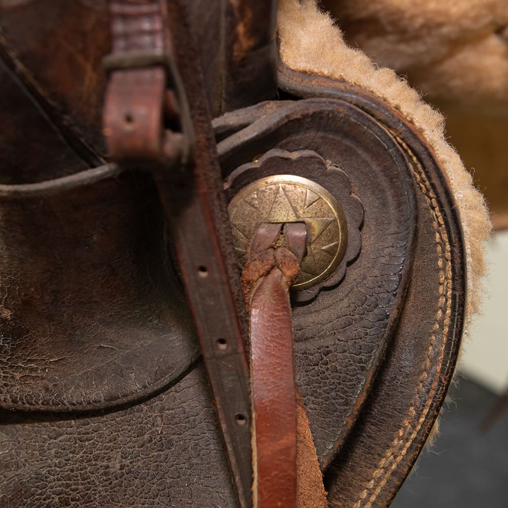 OVERSIZED ITEM - CANNOT SHIP! 3RD PARTY TRANSPORT OR LOCAL PICK UP ONLY! Nice Fred Mueller leather saddle. Makers name "Fred Mueller" embossed on seat front and behind seat. Fenders marked "Tipton Bronco Busting Saddle" and "B-S" initials. The stirrups are covered with rawhide with leather lace. The fleece is in good condition. Seat measures approx 14". Horn 3.75" Condition good. Leather can use some conditioning. Minor scratches. Nice example. **History: Fred Mueller was born in the mid 1860s in St. Louis, Missouri. He opened a saddle shop in Denver, Colorado in 1891 and died in 1924. Fred sold his business in 1917. The shop continued until 1957.