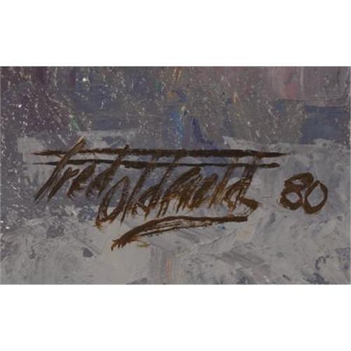 <B>Fred Oldfield</B></I> (American b. 1918)<BR><I>Range Detective</B></I>, 1980<BR>Oil on canvas<BR>22 x 30 inches (55.9 x 76.2 cm)<BR>Signed lower left <I>Fred Oldfield 80</B></I><BR> <B>Condition Report:</B> Normal signs of wear as appropriate with age.<BR><BR><b>Shipping:</b> Requires 3rd Party Shipping (<a target="_blank" href="http://www.heritageauctions.com/common/shipping.php">view shipping information</a>)