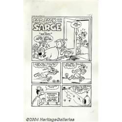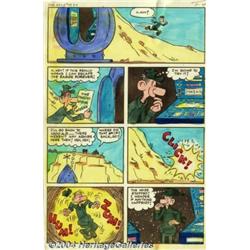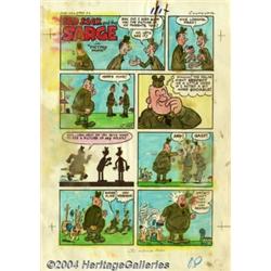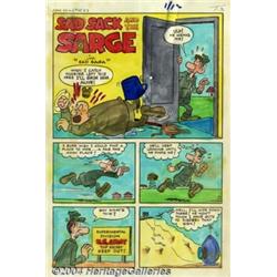 Fred Rhoads - Original Art for Sad Sack and the Sarge #55, Complete 22-page issue (Harvey, 1966). A hilarious issue of Sad Sack's misadventures. On pages 1-7, 10-14, and 19-23, the overall paper size measures 14" x 22.5" with an image area of 11" x 16.5"; on pages 8 and 9, and 26-30, the artwork is smaller, measuring an overall 12" x 18" with an image area of 10.5" x 16". Pages 24 and 25 are the text pages and are photostatted type and spot illustrations. Sad Sack does some time traveling in the lead story. There is water damage to the top borders of the art, outside of the art area for the most part. Page 20 also has a piece out of the paper at the top border, well outside of the art image. 24 Original Art Important notice: Heritage usually auctions material at the rate of 200-250 lots per hour. On some occasions eBay Live bid software or the Internet may not be able to keep up with the pace of the auction. We recommend placing a realistic absentee bid now as insurance to avoid disappointment. Occasionally the auctioneer may eliminate or reject an eBay Live bid, and the auctioneer may also reopen a lot after the close of the eBay live bidding (usually because we missed an audience bid), and may reject your bid even if it shows you as the winning bidder. By bidding via eBay Live, you agree that Heritage may award the lot to another bidder at its sole discretion under the circumstances described above or any other reasonable circumstances. Since eBay bids are not shown to us until we open the lot on the floor, we treat those bids just like floor bids. In most cases the floor responds before the eBay bid is presented to us, due to Internet lag time, so for consistency we have made it a policy that floor bids are always considered first over tie eBay live bids. Also please note that all Heritage lots purchased through eBay Live carry a 20% Buyer's Premium. Please make sure you read the Terms and Conditions before you bid.