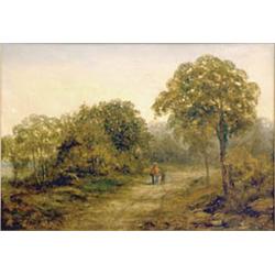 Fred Taylor - oil on canvas, 'A Country Lane, Warwickshire, 1879', signed, 10ins x 14ins. £200-300