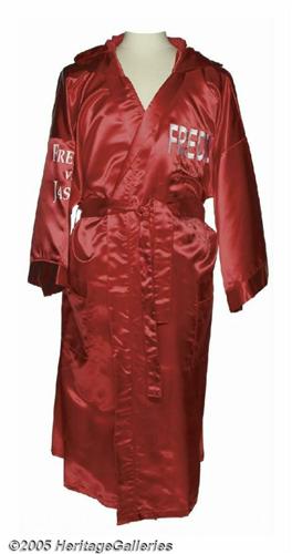 <B>"Freddy Vs. Jason" Signed Boxing Robe.</B></I> Featured is a red satin "Freddy" boxing robe promoting the movie, signed by actors Robert Englund and Ken Kirzinger.