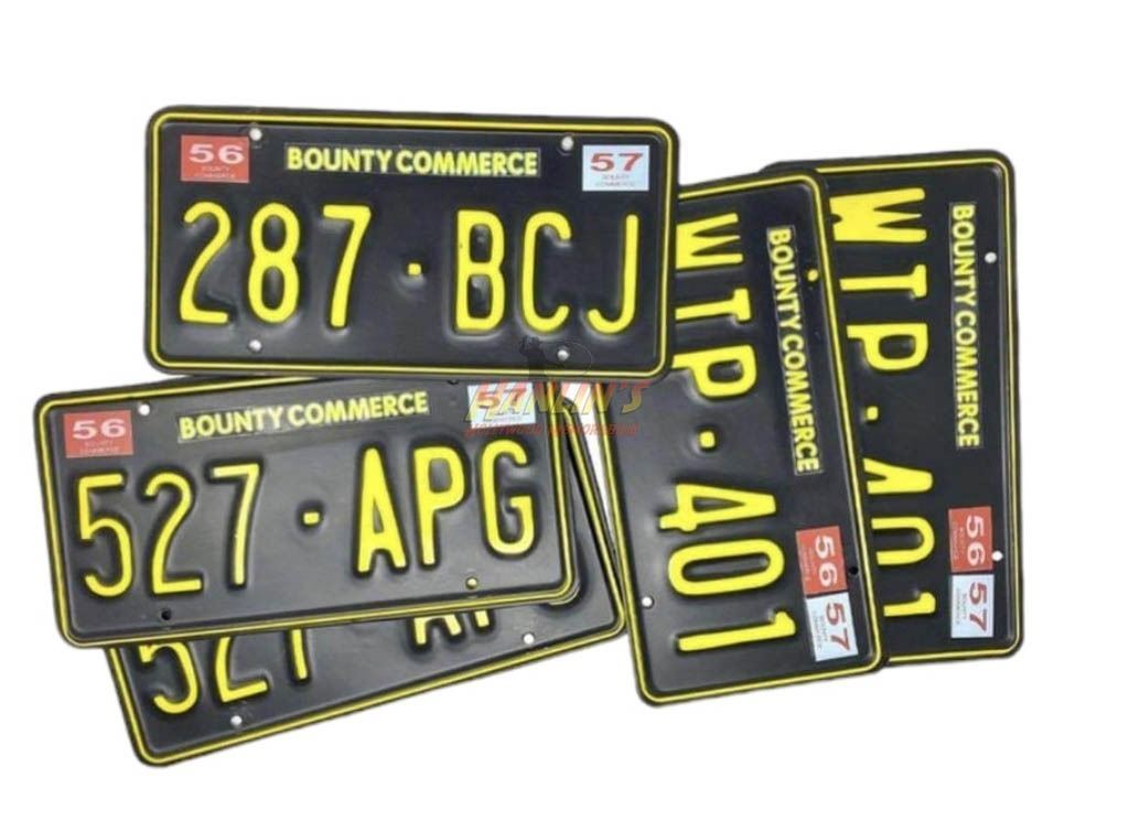 A collection of 5 license plates from the 1950's flashback sequence in the Ronny Yu directed slasher film 'Freddy vs. Jason' (2003), the crossover between the Nightmare on Elm Street and Friday the 13th series.