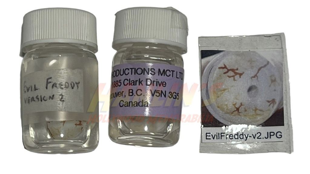 Original set of 2 version 2 contact lenses in the original production used solution bottles used by "Freddy", played by Robert Englund in the Ronny Yu directed slasher film 'Freddy vs. Jason' (2003), the crossover between the Nightmare on Elm Street and Friday the 13th series.