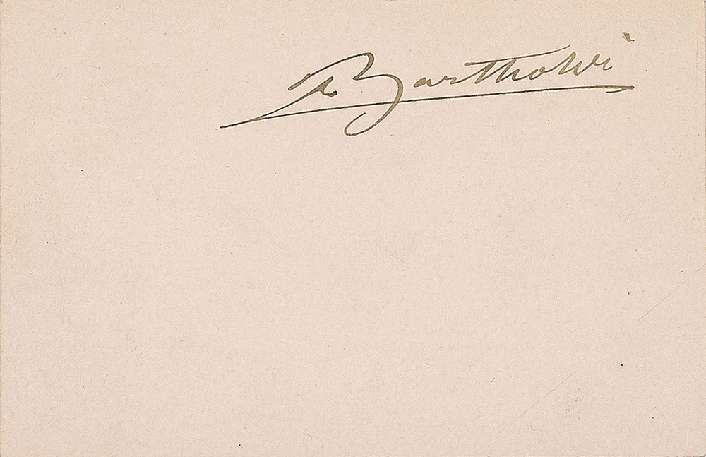 Eminent French sculptor (1834–1904) best known for designing the Statue of Liberty. Ink signature, “Bartholdi,” on a 4.25 x 2.75 card. In fine condition.
