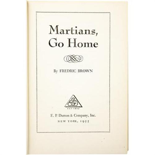 <B>Frederic Brown: </B></I><B><I>Martians, Go Home.</B></I></B></I> (New York: E. P. Dutton & Company, 1955), first edition, 189 pages, green boards, 8vo, dust jacket. Condition (book/ dj): very good/ very good.<BR><BR><b>Shipping:</b> Books & Catalogs (<a target="_blank" href="http://www.heritageauctions.com/common/shipping.php">view shipping information</a>)