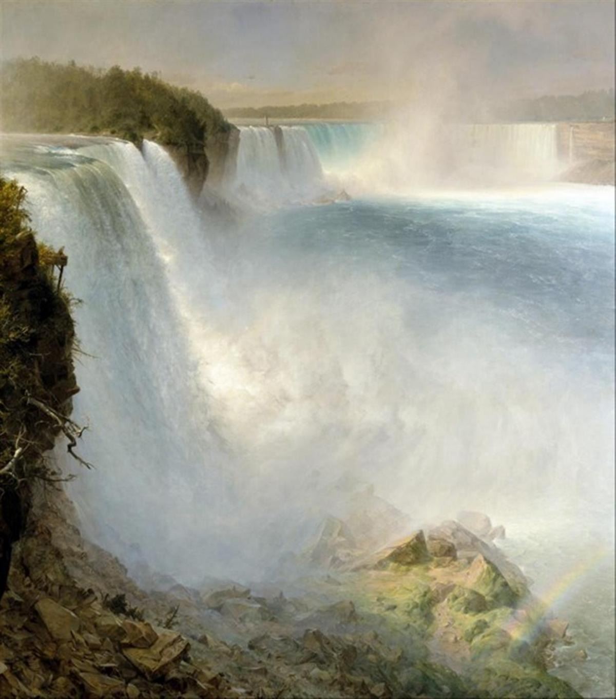 Artist: Frederic Edwin Church - Title: Niagra Falls from the American Side - Medium: Fine Art Giclee on Canvas - Image Size: Approximately 32 inches x 28 inches - Framed: Unframed on Unstretched Canvas - Biography: Frederic Edwin Church, (born May 4, 1826, Hartford, Connecticut, U.S.--died April 7, 1900, near New York, New York), American Romantic landscape painter who was one of the most prominent members of the Hudson River school.
