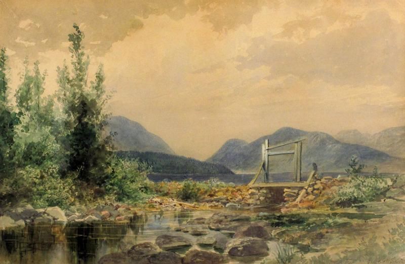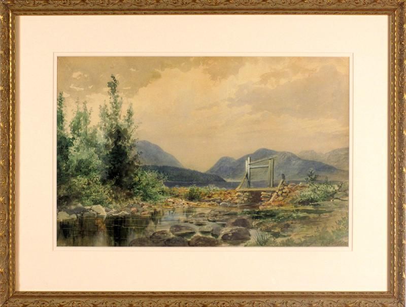 HILLY LANDSCAPE WITH RIVER AND STONE DAM