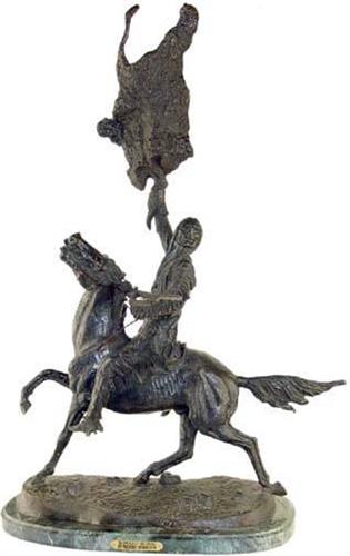 Frederic Remington (1861-1909) (New York) Posthumous Bronze, "The Buffalo Signal," 35" x 25" x 8", Remington studied at the Art Students League of New York and the Yale School of Fine Art, he was also a member of the American Watercolor Society, the Boston Art Club Member, the Cornish Art Colony New Hampshire, the National Academy of Design, the National Arts Club and the Society of Illustrators