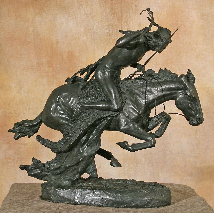 Frederic Remington (1861-1909). The Cheyenne. 19" x 23" x 8" bronze. Signature inscribed: Frederic Remington, Copyright 1901. Marked: ROMAN BRONZE WORKS N.Y. (est. $10,000-20,000). Provenance: From Salvatore Schiavo's personal collection. CONDITION REPORTS: www.auctioninsantafe.com/docs/cr2012.pdf