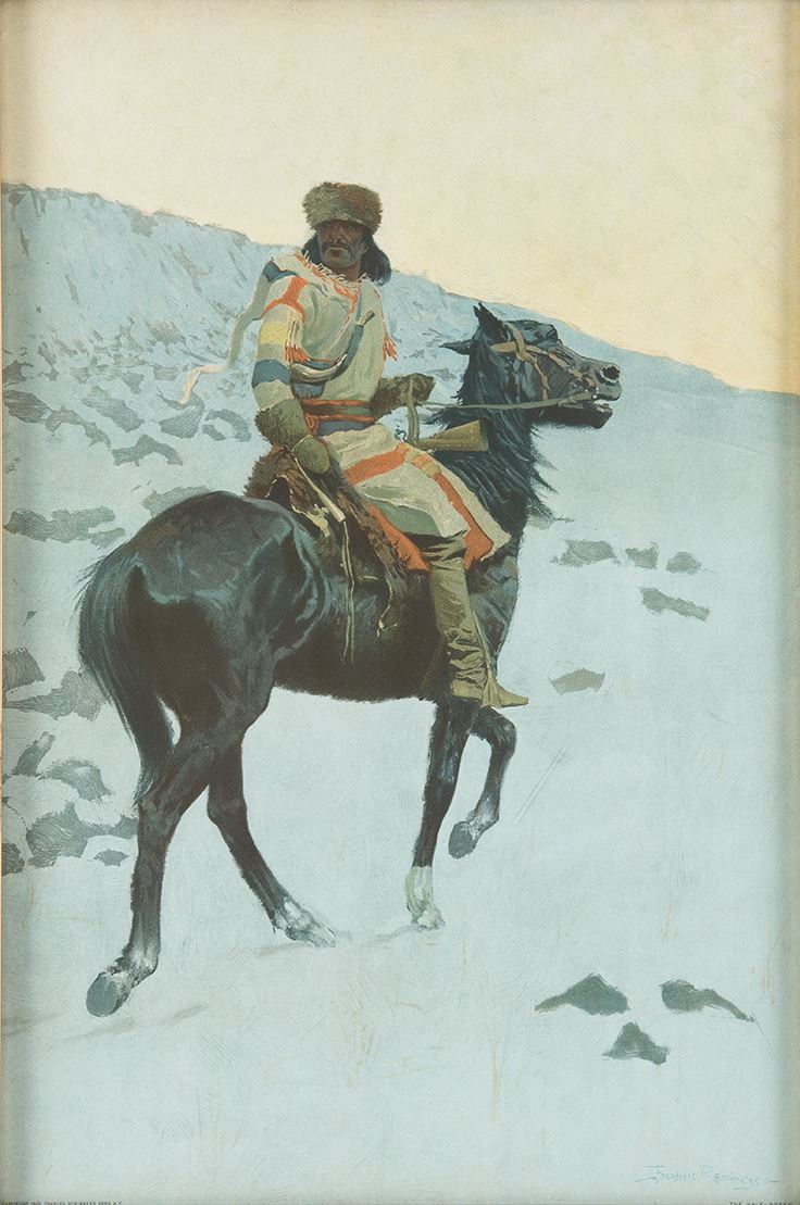 Frederic Remington (1861-1909). The Half-Breed. 17" x 11 ½" chromolithograph. Signed lower right. Imprint: The Half Breed lower right. Copyright 1902 Charles Scribner's Sons N.Y. lower left. One of four of the print series "Western Types" published in 1902.