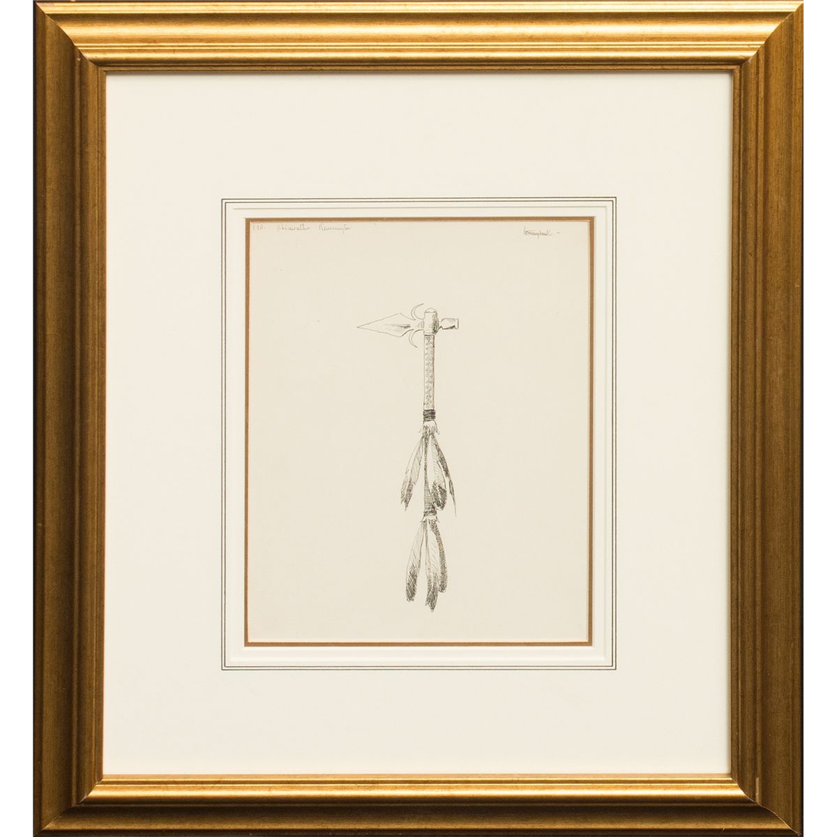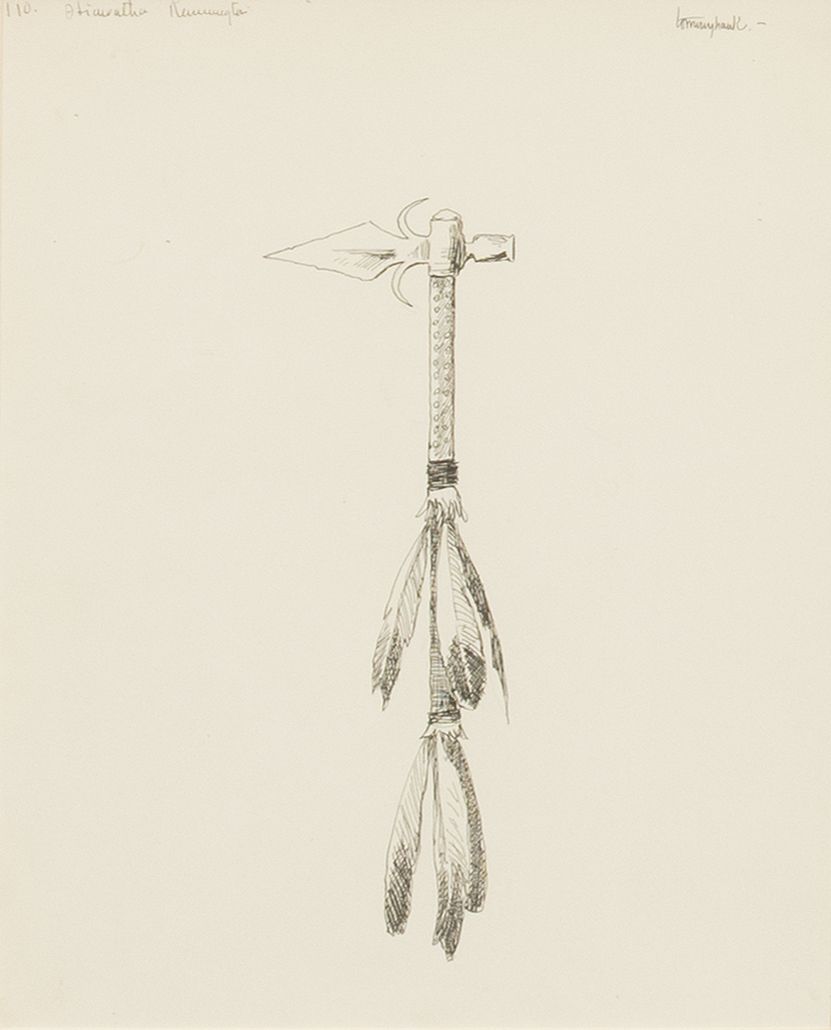 Frederic Sackrider Remington (1861 - 1909). Tommyhawk. 10.75" x 8.75" pen and ink. Inscribed upper left: 110 Hiawatha Remington. Titled upper right. Verso: Labels attached from Zaplin Lampert Gallery (Santa Fe, NM.) and Spanierman Gallery (New York, NY.) Literature: The Song of Hiawatha, by Henry Wadsworth Longfellow, The Frederic Remington Illustrated Edition, page 124.
