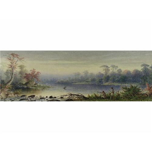 [Canadian OSA, RCA 1836-1928] UNTITLED (INDIAN HUNTERS); 1869 Watercolour on paper 10 x 29.5 in. Signed & dated.