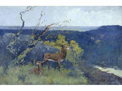 [American, OSA, 1865-1907] ROLBE DE DIEU, FORET DE FONTAINEBLEU; 1882 Oil on canvas 19 x 29 ins. -Signed, titled & dated