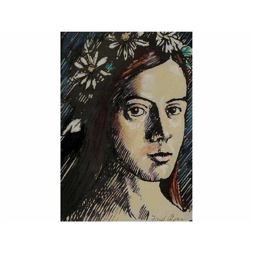 [Canadian RCA b. 1927] UNTITLED PORTRAIT (WOMAN WITH FLOWERS IN HER HAIR) Mixed media on paper 6 x 4.25 in. Signed.