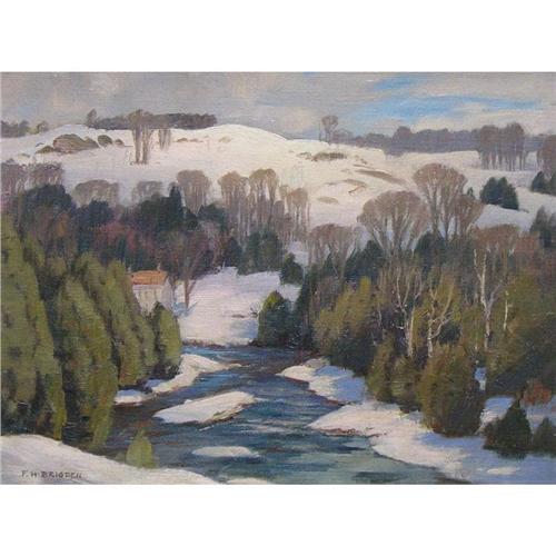 Canadian CSPWC, OSA, RCA [1871-1956] WINTER LANDSCAPE WITH ROLLING HILLS AND RIVER VALLEY watercolour on paper 10.25 x 13.5 in. (26 x 34.3 cm) signed