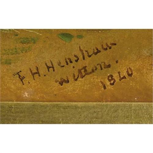 <B>FREDERICK HENRY HENSHAW (British, 1807-1891)</B></I><BR><I>Witton Landscape</B></I>, 1840<BR>Oil on canvas<BR>14-1/4 x 20-1/2 inches (36.2 x 52.1 cm)<BR>Signed lower right: <I>F.H. Henshaw/Witton/1840</B></I><BR> <BR>PROVENANCE:<BR>Elsie Orfus Ltd., Fine Art Galleries, Palm Beach, Florida (label verso)<BR>