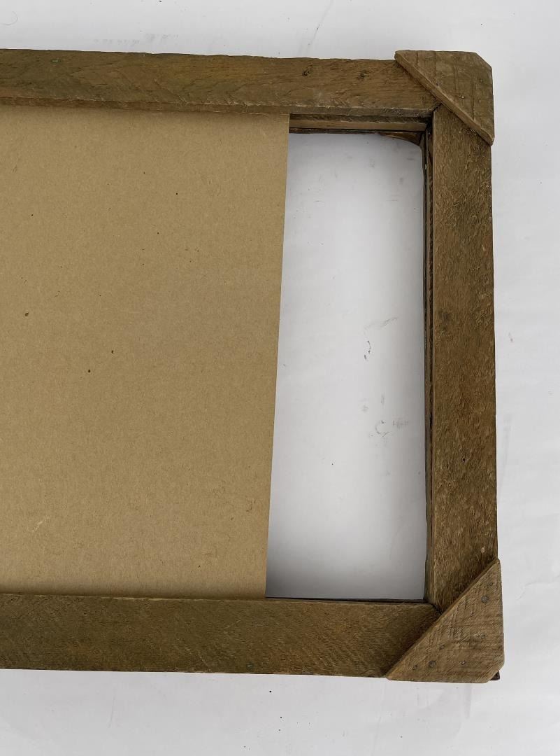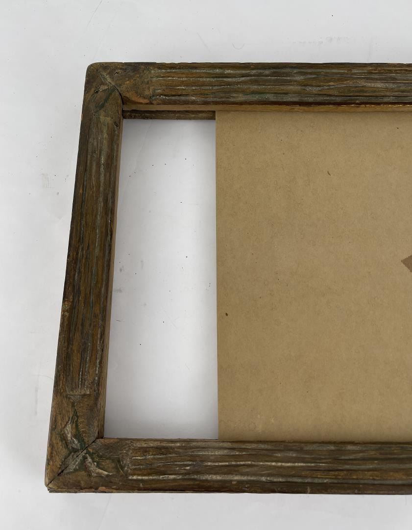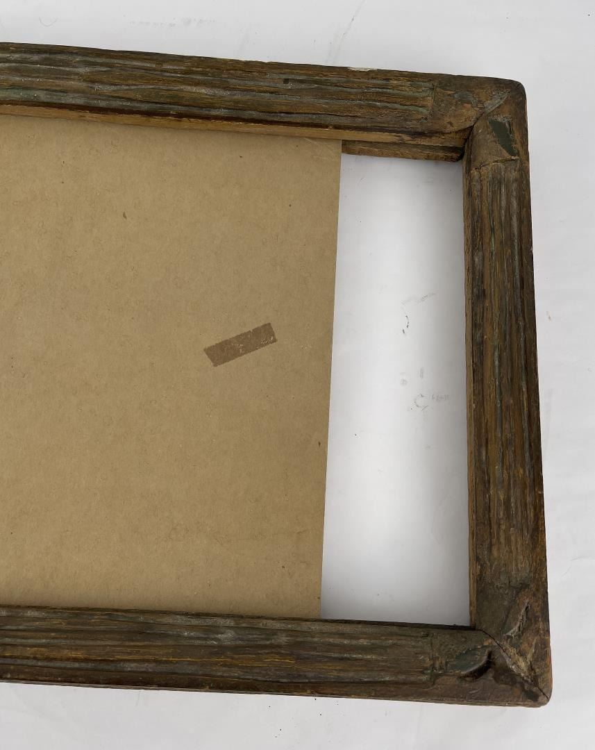 Was used by Kress to Mock Frame all of his stretched canvases. Used from the 1920s until his death. Born in Pittsburgh, PA on Jan. 7, 1888, the son of artist Carl Victor Kress. Fred Kress spent his childhood in Pittsburgh and high school years in Independence, MO. His arrival with his family in San Francisco was a few months before the disaster of 1906. While working with his father as a sign and scenery painter, he studied at the Institute of Art. During his five years at that school he also studied privately with local artists Maynard Dixon, C. Chapel Judson, and Emil Grebs. In 1912 Kress began making painting excursions into the Big Sur area, Yosemite, Lake Tahoe, and Marin County when not working in the paint department of Foster & Kleiser (billboards), a position he held for 42 years. He exhibited with the San Francisco Art Ass'n until 1920 and after that time painted strictly for pleasure and was not known to have exhibited or sold any of his paintings. A resident of San Francisco until 1962, his last years were spent in Santa Rosa, CA where he died on Aug. 10, 1970. Using a bright palette, he painted small, realistic landscapes of northern California. Exh: San Francisco Art Association, 1913-16.