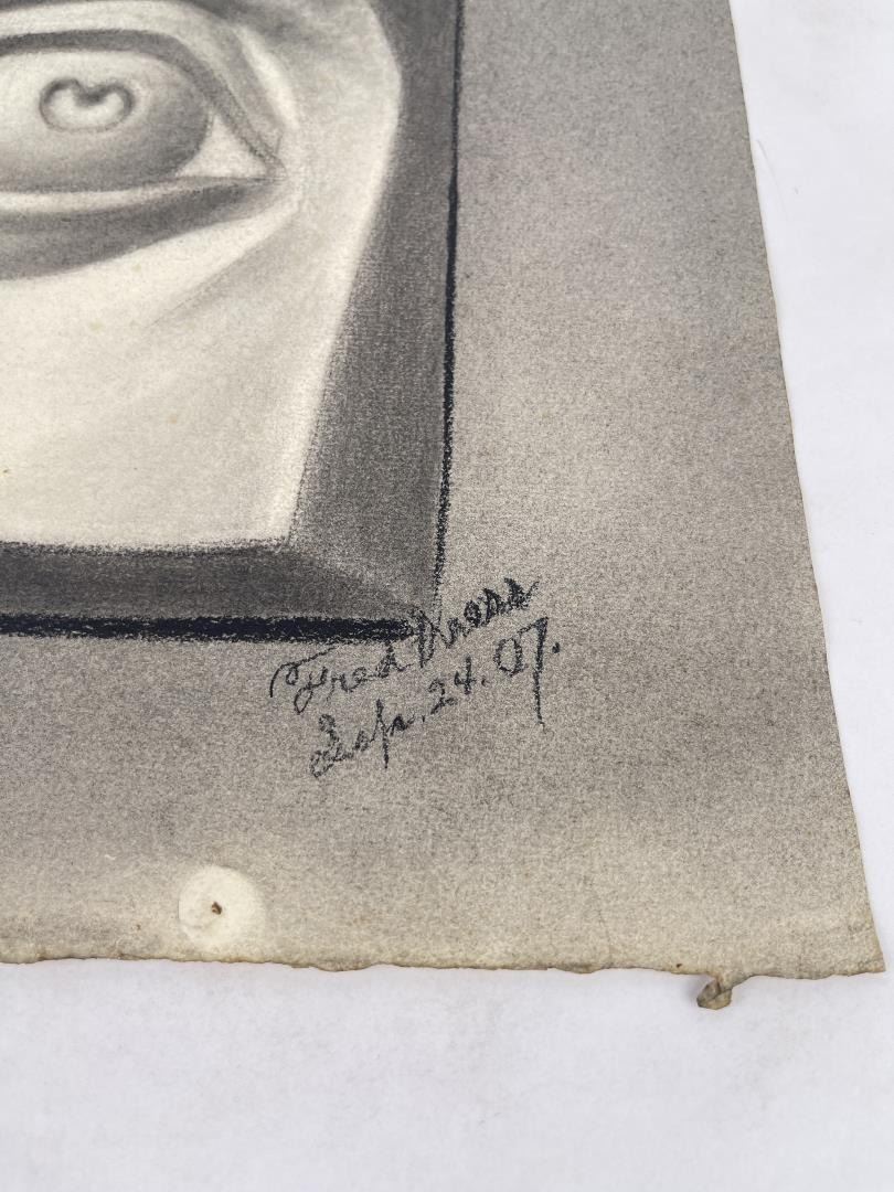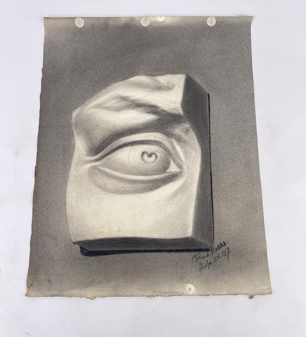 Graphite on paper. 12.75" by 16". Circa 1907. Born in Pittsburgh, PA on Jan. 7, 1888, the son of artist Carl Victor Kress. Fred Kress spent his childhood in Pittsburgh and high school years in Independence, MO. His arrival with his family in San Francisco was a few months before the disaster of 1906. While working with his father as a sign and scenery painter, he studied at the Institute of Art. During his five years at that school he also studied privately with local artists Maynard Dixon, C. Chapel Judson, and Emil Grebs. In 1912 Kress began making painting excursions into the Big Sur area, Yosemite, Lake Tahoe, and Marin County when not working in the paint department of Foster & Kleiser (billboards), a position he held for 42 years. He exhibited with the San Francisco Art Ass'n until 1920 and after that time painted strictly for pleasure and was not known to have exhibited or sold any of his paintings. A resident of San Francisco until 1962, his last years were spent in Santa Rosa, CA where he died on Aug. 10, 1970. Using a bright palette, he painted small, realistic landscapes of northern California. Exh: San Francisco Art Association, 1913-16.