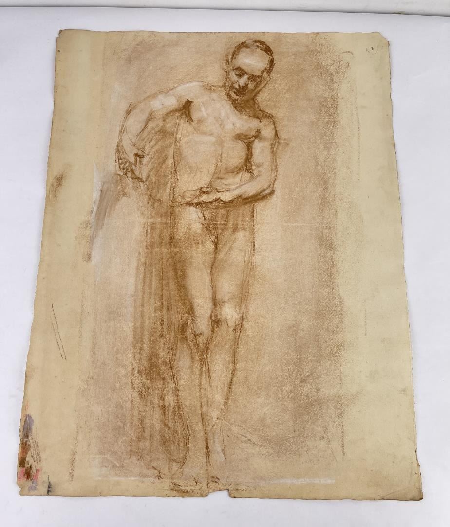 Graphite on paper. 18.75" by 24.25". Circa 1920s. Born in Pittsburgh, PA on Jan. 7, 1888, the son of artist Carl Victor Kress. Fred Kress spent his childhood in Pittsburgh and high school years in Independence, MO. His arrival with his family in San Francisco was a few months before the disaster of 1906. While working with his father as a sign and scenery painter, he studied at the Institute of Art. During his five years at that school he also studied privately with local artists Maynard Dixon, C. Chapel Judson, and Emil Grebs. In 1912 Kress began making painting excursions into the Big Sur area, Yosemite, Lake Tahoe, and Marin County when not working in the paint department of Foster & Kleiser (billboards), a position he held for 42 years. He exhibited with the San Francisco Art Ass'n until 1920 and after that time painted strictly for pleasure and was not known to have exhibited or sold any of his paintings. A resident of San Francisco until 1962, his last years were spent in Santa Rosa, CA where he died on Aug. 10, 1970. Using a bright palette, he painted small, realistic landscapes of northern California. Exh: San Francisco Art Association, 1913-16.