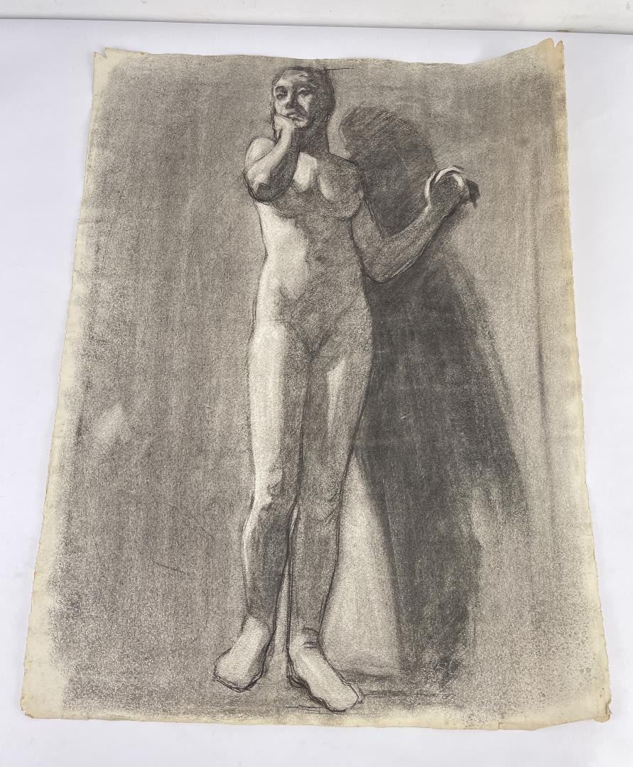 Graphite on paper. 18.75" by 24.5". Circa 1920s. Born in Pittsburgh, PA on Jan. 7, 1888, the son of artist Carl Victor Kress. Fred Kress spent his childhood in Pittsburgh and high school years in Independence, MO. His arrival with his family in San Francisco was a few months before the disaster of 1906. While working with his father as a sign and scenery painter, he studied at the Institute of Art. During his five years at that school he also studied privately with local artists Maynard Dixon, C. Chapel Judson, and Emil Grebs. In 1912 Kress began making painting excursions into the Big Sur area, Yosemite, Lake Tahoe, and Marin County when not working in the paint department of Foster & Kleiser (billboards), a position he held for 42 years. He exhibited with the San Francisco Art Ass'n until 1920 and after that time painted strictly for pleasure and was not known to have exhibited or sold any of his paintings. A resident of San Francisco until 1962, his last years were spent in Santa Rosa, CA where he died on Aug. 10, 1970. Using a bright palette, he painted small, realistic landscapes of northern California. Exh: San Francisco Art Association, 1913-16.