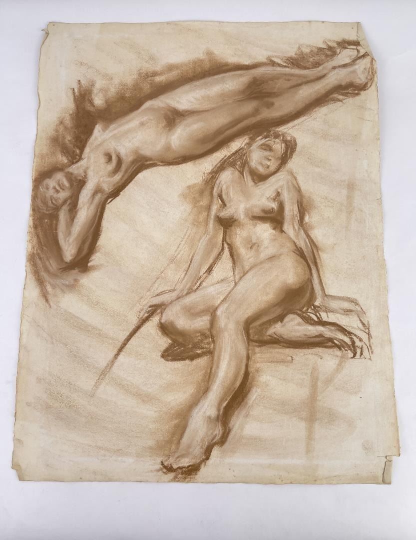 Sephia Graphite on paper. 18.75" by 24.25". Circa 1920s. Born in Pittsburgh, PA on Jan. 7, 1888, the son of artist Carl Victor Kress. Fred Kress spent his childhood in Pittsburgh and high school years in Independence, MO. His arrival with his family in San Francisco was a few months before the disaster of 1906. While working with his father as a sign and scenery painter, he studied at the Institute of Art. During his five years at that school he also studied privately with local artists Maynard Dixon, C. Chapel Judson, and Emil Grebs. In 1912 Kress began making painting excursions into the Big Sur area, Yosemite, Lake Tahoe, and Marin County when not working in the paint department of Foster & Kleiser (billboards), a position he held for 42 years. He exhibited with the San Francisco Art Ass'n until 1920 and after that time painted strictly for pleasure and was not known to have exhibited or sold any of his paintings. A resident of San Francisco until 1962, his last years were spent in Santa Rosa, CA where he died on Aug. 10, 1970. Using a bright palette, he painted small, realistic landscapes of northern California. Exh: San Francisco Art Association, 1913-16.
