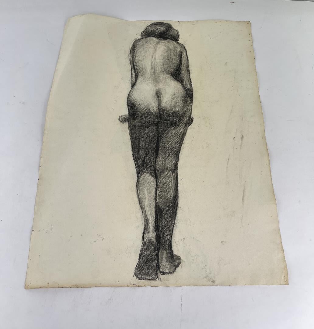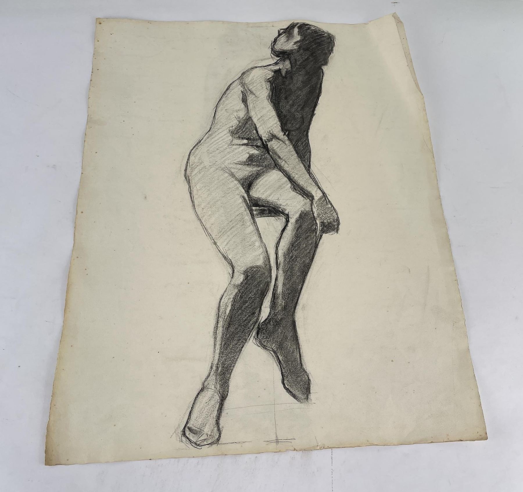 Graphite on paper. 18.75" by 24.25". Circa 1920s. Born in Pittsburgh, PA on Jan. 7, 1888, the son of artist Carl Victor Kress. Fred Kress spent his childhood in Pittsburgh and high school years in Independence, MO. His arrival with his family in San Francisco was a few months before the disaster of 1906. While working with his father as a sign and scenery painter, he studied at the Institute of Art. During his five years at that school he also studied privately with local artists Maynard Dixon, C. Chapel Judson, and Emil Grebs. In 1912 Kress began making painting excursions into the Big Sur area, Yosemite, Lake Tahoe, and Marin County when not working in the paint department of Foster & Kleiser (billboards), a position he held for 42 years. He exhibited with the San Francisco Art Ass'n until 1920 and after that time painted strictly for pleasure and was not known to have exhibited or sold any of his paintings. A resident of San Francisco until 1962, his last years were spent in Santa Rosa, CA where he died on Aug. 10, 1970. Using a bright palette, he painted small, realistic landscapes of northern California. Exh: San Francisco Art Association, 1913-16.