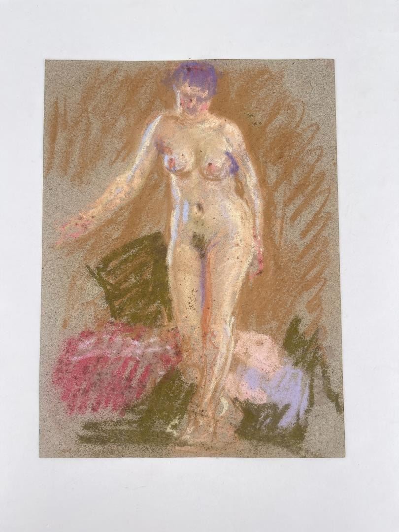 Pastel on paper. 7.25" by 10". Circa 1920s. Born in Pittsburgh, PA on Jan. 7, 1888, the son of artist Carl Victor Kress. Fred Kress spent his childhood in Pittsburgh and high school years in Independence, MO. His arrival with his family in San Francisco was a few months before the disaster of 1906. While working with his father as a sign and scenery painter, he studied at the Institute of Art. During his five years at that school he also studied privately with local artists Maynard Dixon, C. Chapel Judson, and Emil Grebs. In 1912 Kress began making painting excursions into the Big Sur area, Yosemite, Lake Tahoe, and Marin County when not working in the paint department of Foster & Kleiser (billboards), a position he held for 42 years. He exhibited with the San Francisco Art Ass'n until 1920 and after that time painted strictly for pleasure and was not known to have exhibited or sold any of his paintings. A resident of San Francisco until 1962, his last years were spent in Santa Rosa, CA where he died on Aug. 10, 1970. Using a bright palette, he painted small, realistic landscapes of northern California. Exh: San Francisco Art Association, 1913-16.
